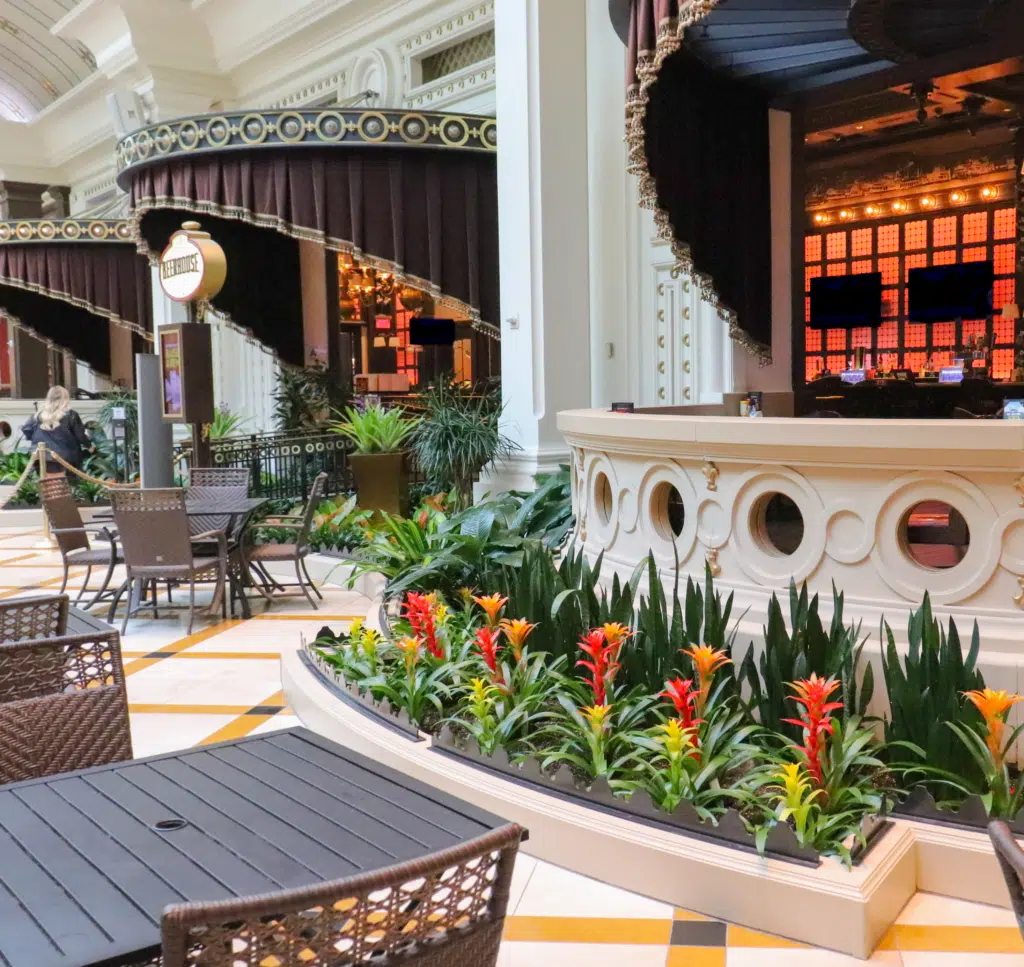 Our commitment to service excellence goes beyond aesthetics and is evident in our adaptability to the unique challenges of a public casino setting. We meticulously care for the plants, with our technician diligently monitoring and maintaining their health and vitality in both the well-lit atrium and the low-light steakhouse environment. We have successfully navigated challenges, showcasing our professionalism and problem-solving skills.