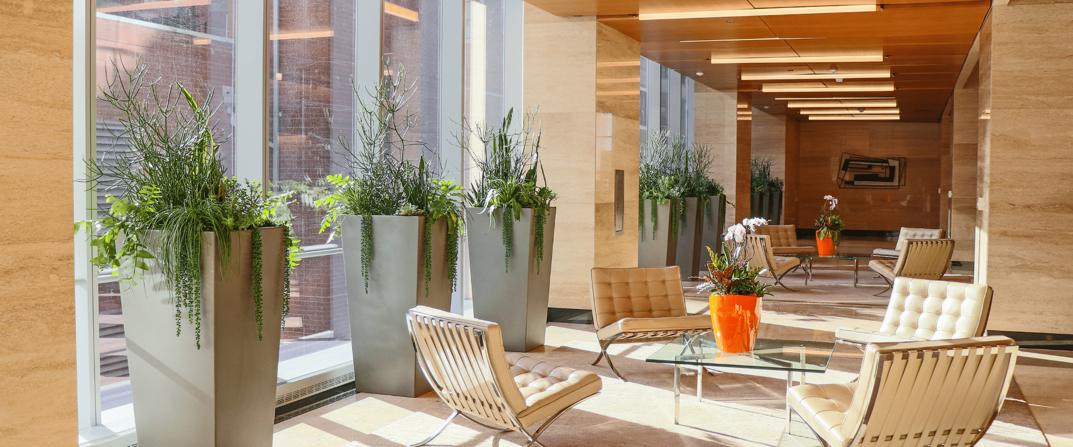 Our team's comprehensive plantscape design has added life to this downtown office building's lobby and office space. With plants, we have enhanced our client's space by accenting its current design. Together, we have created a welcoming environment for employees and guests.