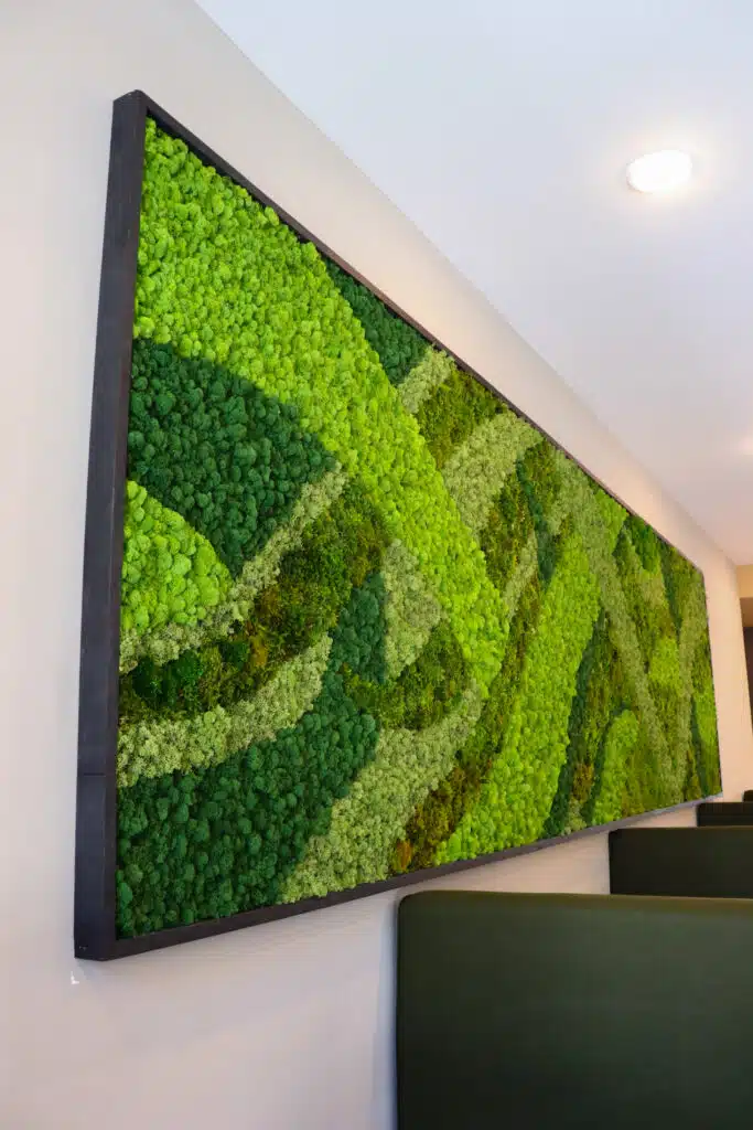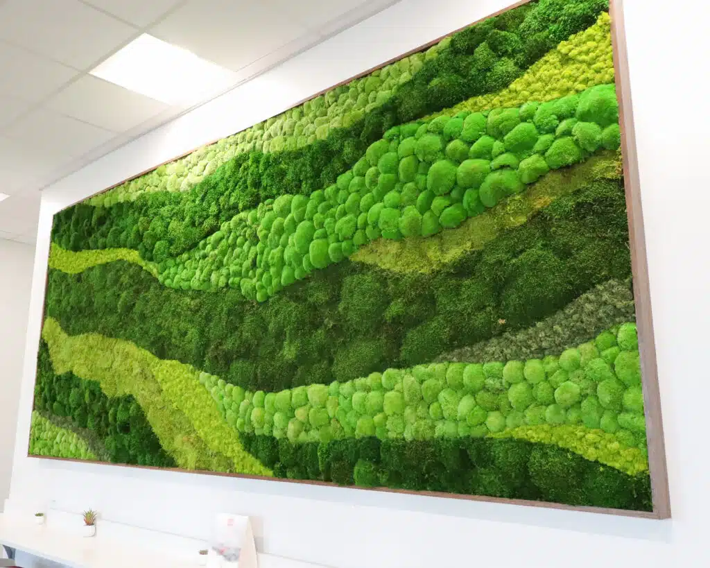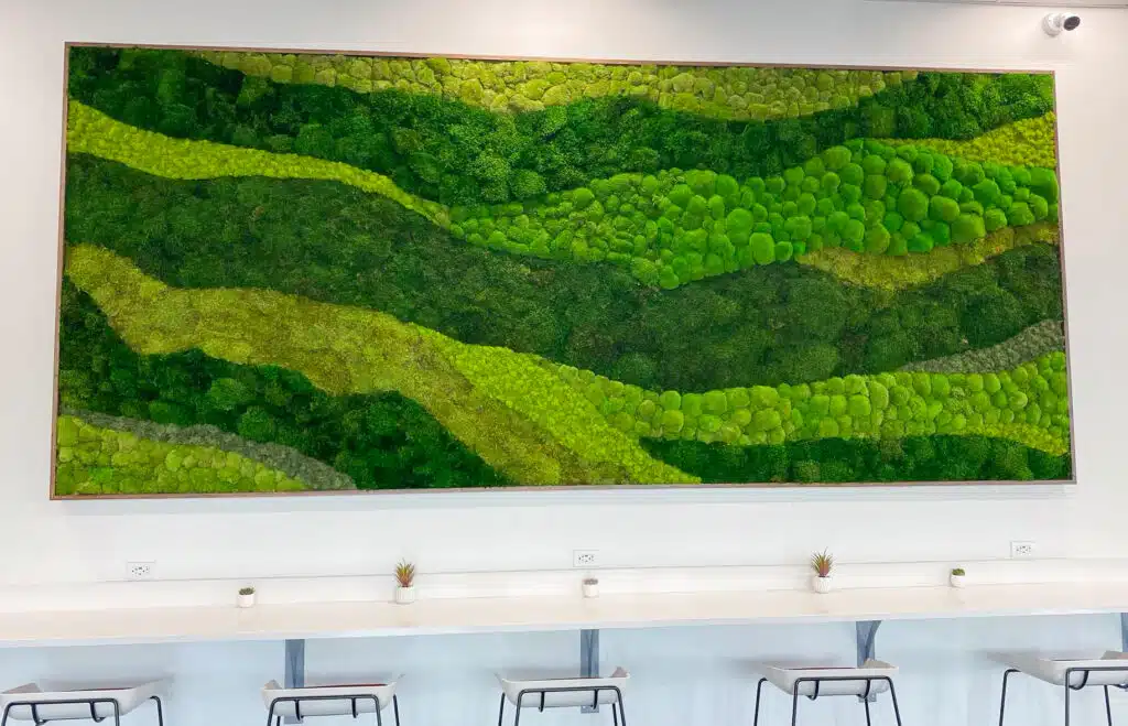 This innovative project transformed a blank, white wall in a car dealership's waiting area into a vibrant and engaging focal point. Installing a 14' by 6' moss wall enhanced the space's aesthetic appeal and introduced a significant dose of biophilia, creating a welcoming and relaxing environment for customers.