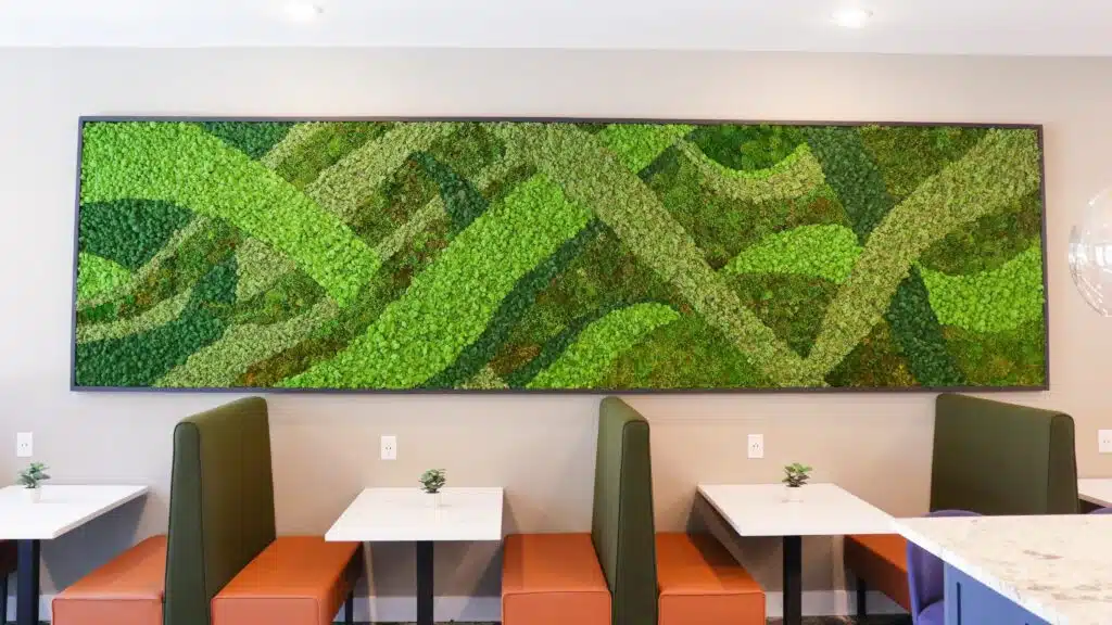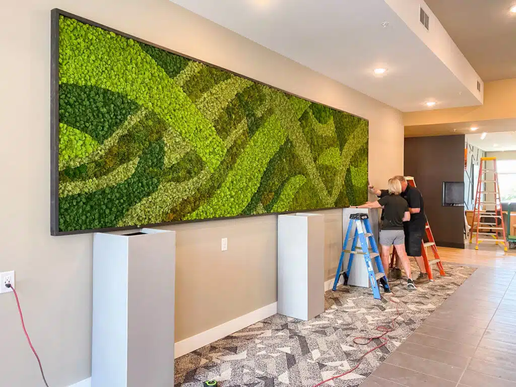 Moss walls provide incredible acoustic dampening and vibrant color without the need for complex irrigation or high-intensity lighting. Browse our latest St. Louis moss wall projects to see why preserved greenery is the premier choice for modern commercial interior design and biophilic workspaces.