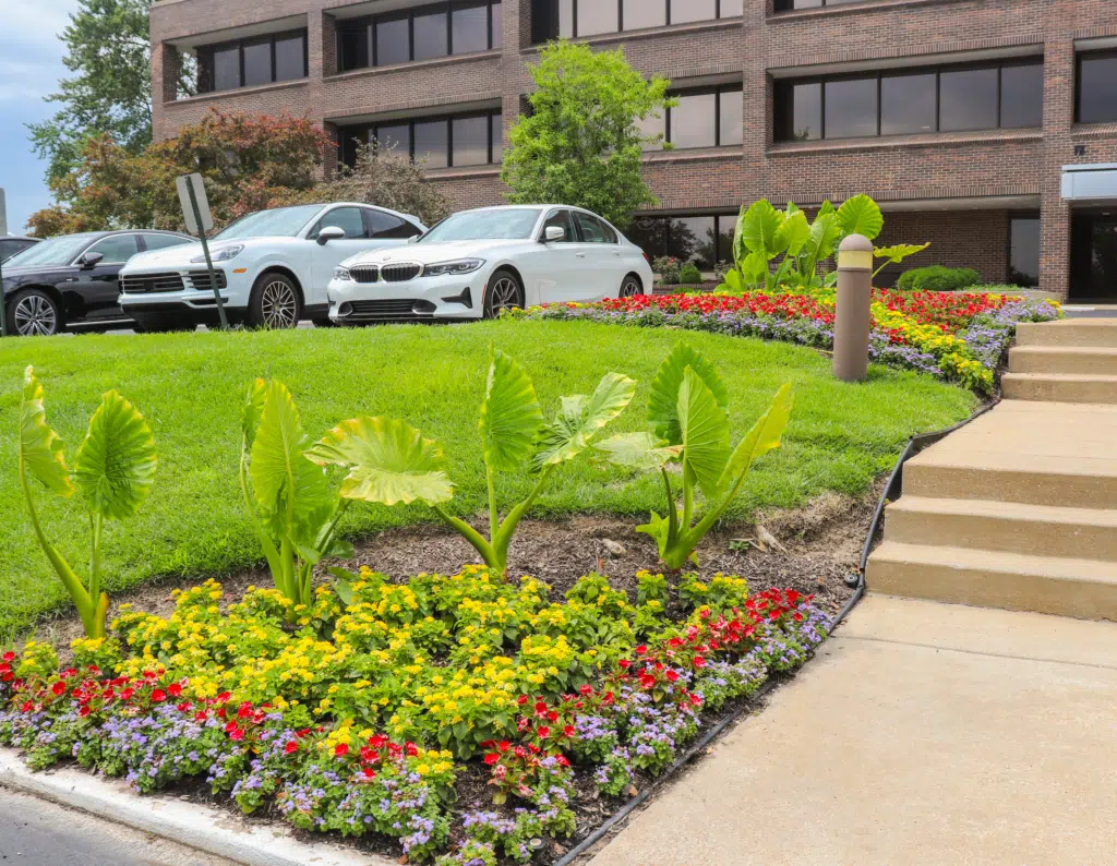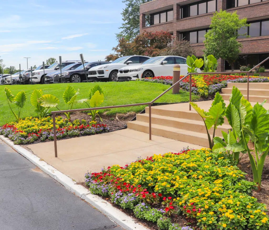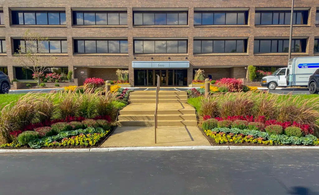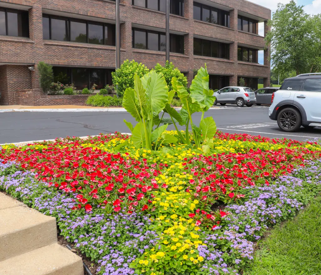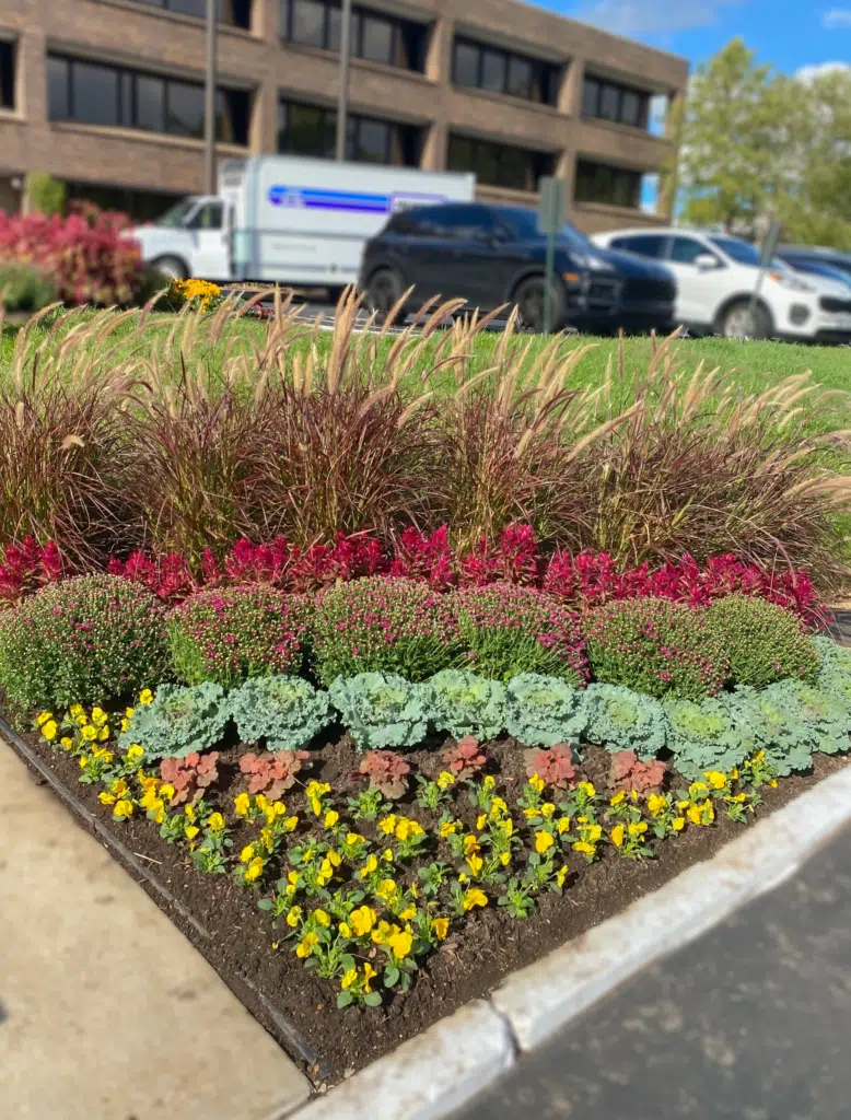 Since taking over this campus, we have provided high-impact seasonal designs that ensure a cohesive and welcoming curb appeal. From a courtyard bed featuring curated pumpkins and mums to street-side plantings that guide visitors toward entrances, our work navigates urban lighting challenges with adaptable, vibrant species. We maintain permanent centerpiece greenery in large containers with rotating seasonal underplantings, creating a thriving landscape that earns constant praise from employees and bank guests alike.