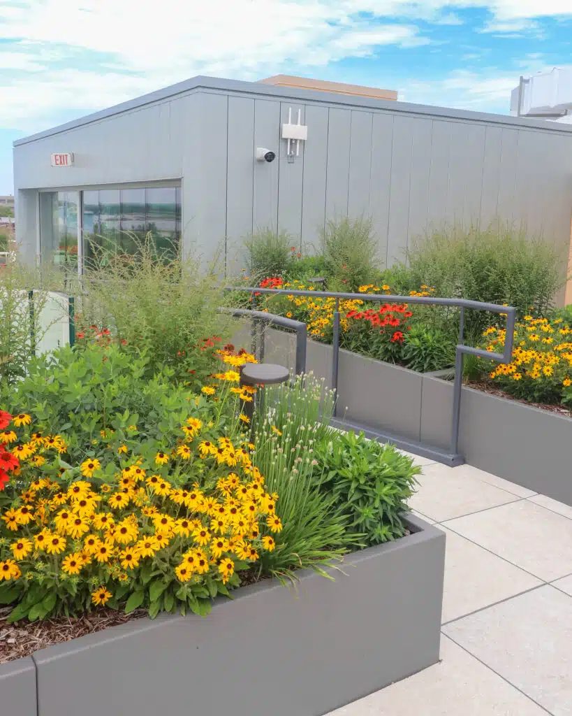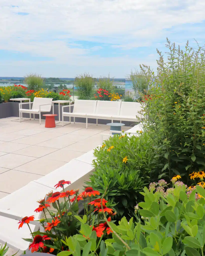 To transform this historic rooftop into a calming urban escape, our team manually hauled 27 tons of soil and over 40 containers after live electrical lines prevented crane access. We meticulously selected native plants and nativars designed to thrive within strict weight limits and shallow soil conditions. This project is the result of three years of careful planning, turning a challenging rooftop into a resilient and recognized green sanctuary.