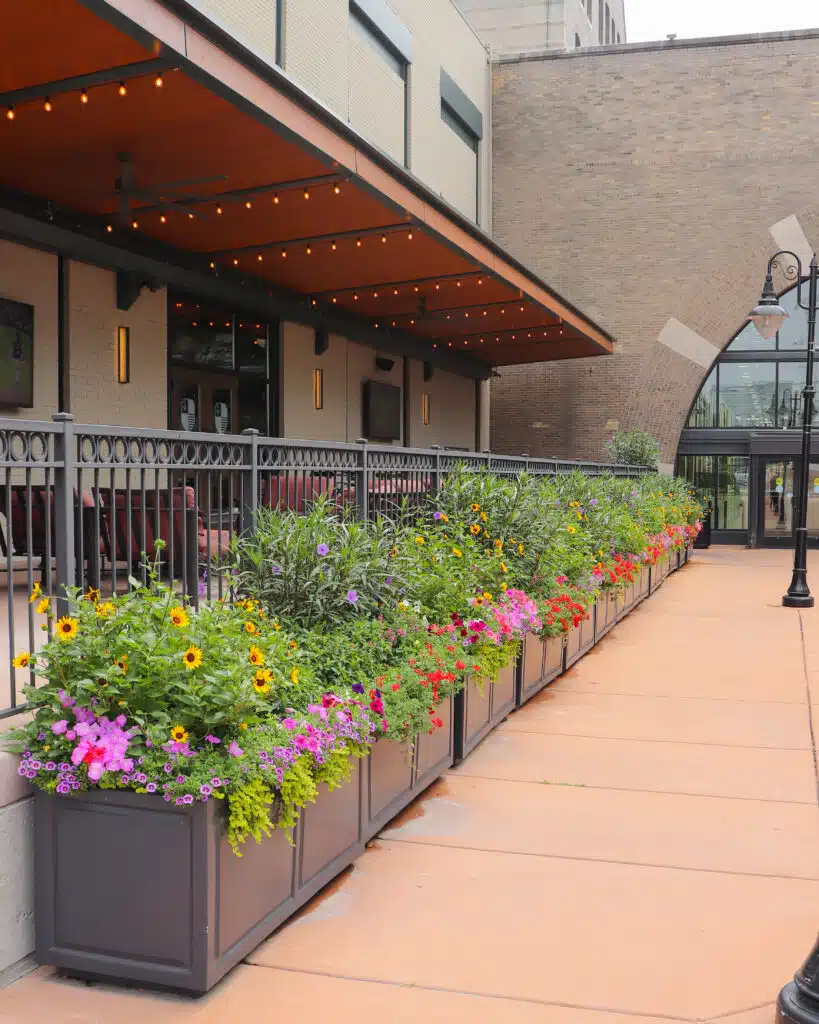 To complement this historic train station's renovation into a multi-use destination, we provide vibrant, high-impact containers that enhance everything from the aquarium to the local soccer bar. Our team strategically utilizes planters as functional fences to define walkways and patios, ensuring greenery adds life without obstructing heavy foot traffic. From welcoming guests at the Ferris wheel to providing a colorful backdrop for outdoor dining, these installations boost curb appeal while thoughtfully framing the site’s stunning historic architecture.
